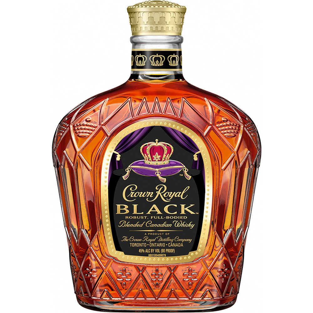 Crown Royal Black Canadian Whiskey is crafted in Canadian tradition by blending finished whiskies with a base spirit. Crown Royal Black is a rich and flavorful blend of Canadian whiskey. All the signature smoothness of Crown Royal, matured in charred oak barrels and blended at a higher proof for a richer texture and bold finish. A bolder, darker and more robust whiskey blended at 90 proof, yet with the signature smoothness of Crown Royal. It has a deeper oak background with dark, sweet, maple notes and a light vanilla flavor towards the finish. Drink on the rocks or with a mixer. Please drink responsibly.