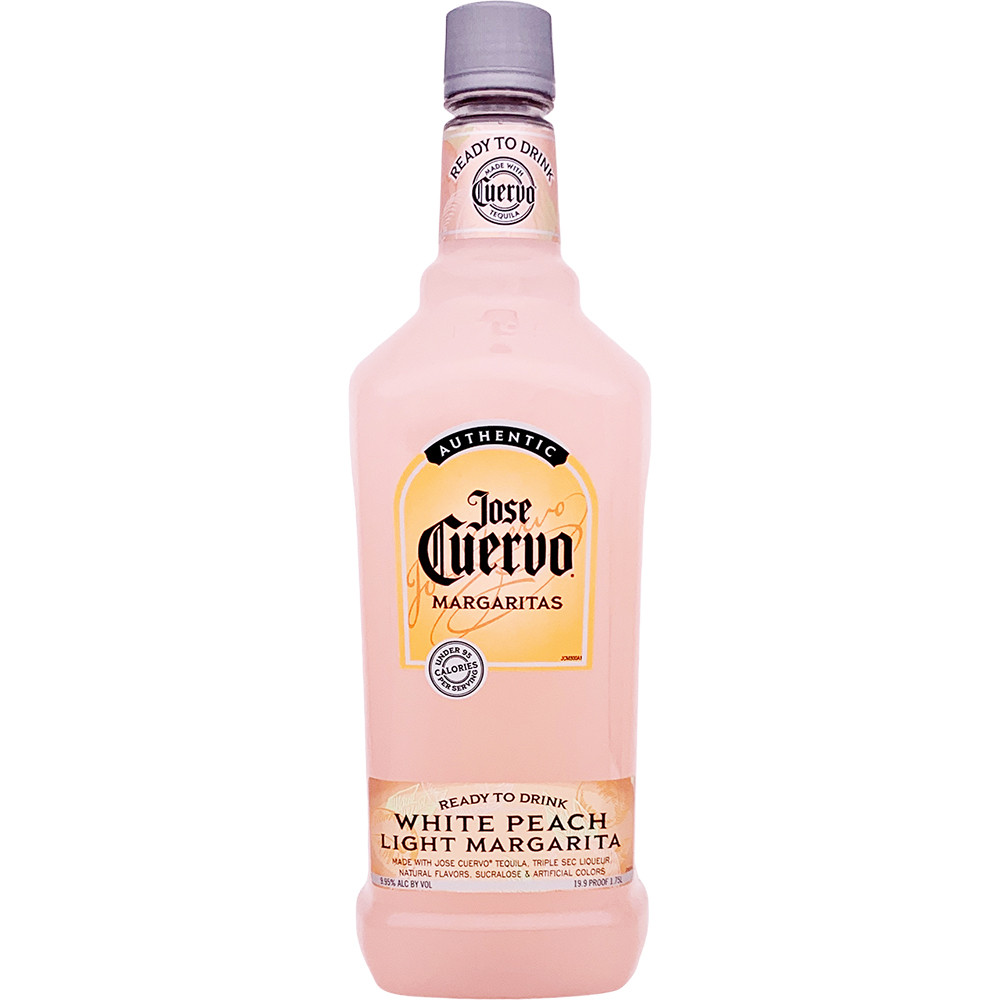 Jose Cuervo Light White Peach Margarita is a refreshing, ready to drink cocktail that combines the vibrant flavors of fleshy peach and lime zest with deeper notes of honey, agave, and orange peel. This delightful margarita is crafted with Jose Cuervo tequila, triple sec liqueur, natural flavors, sucralose, and artificial colors. With an alcohol by volume (ABV) of 9.95%, it offers a balanced and enjoyable drinking experience. Each serving contains fewer than 95 calories, making it a guilt free indulgence. Best enjoyed chilled or over ice, this light margarita is perfect for any occasion, offering the same great taste as the original with fewer calories.