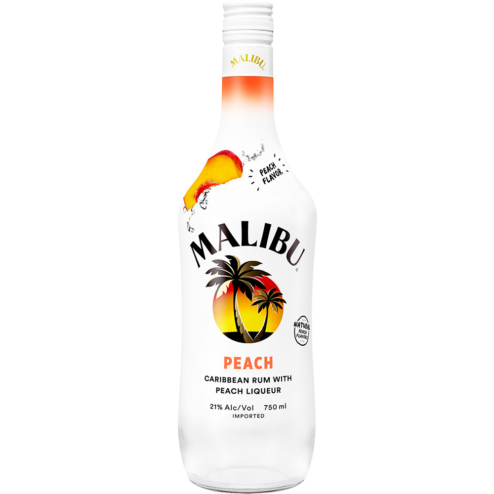 Malibu Peach Rum is a bright and flavorful twist on one of the world’s most popular flavored rum spirits, offering a fruity burst of peach blended with smooth Caribbean rum. Framed with carefully aged white rum and peach liqueur, this spirit provides a luscious and exotic flavor profile, characterized by a sweet body, subtle rum notes, and a long, smooth finish. With 21% alcohol by volume (ABV) (42 proof), Malibu Peach is refreshing, approachable, and perfect for a wide variety of cocktails.